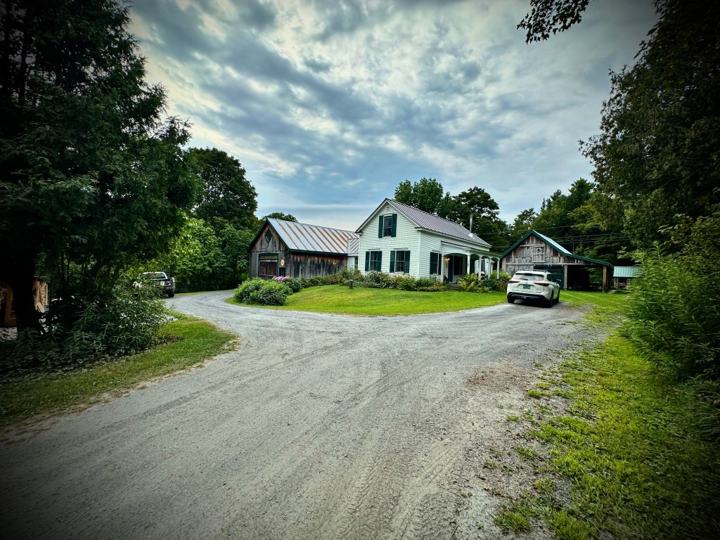 We’re just 15 minutes outside of Montpelier and under an hour from Burlington, right in the heart of historic Kent’s Corner. You’ll find us two doors down from the Kent Museum. Our studio is tucked back behind a cedar hedge, so it can be a little hidden from view — here’s a picture of what it looks like from the road to help you find us.